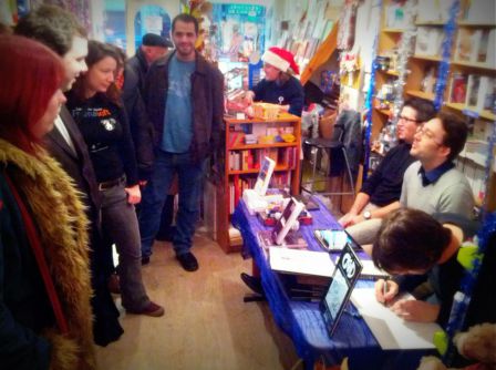 Pour fête dignement cela, nous vous invitons samedi 8 décembre entre 16h et 18h30 à une rencontre dédicace avec trois auteurs de la collection : Simon Gee Giraudot (ci-dessous sur la photo), Benjamin Jean et Pouhiou (ci-dessus sur la photo).