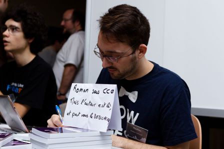 Le choix a été très simple puisque j’étais déjà impliqué dans Framasoft lors de la publication des premiers Framabooks et qu’Alexis m’avait mis au défi de rédiger un ouvrage sur les licences libres…. Un certain nombre d’années auront été nécessaires pour que je trouve le temps nécessaire à l’ouvrage — bien 5-6 ans, j’ai d’ailleurs publié entre-temps le Guide Open Source, mais le pari est tenu. Ayant été sensibilisé aux problématiques des développeurs au travers de la Framagora (ce qui avait mené, un peu plus tard, à la création de l’association Veni, Vidi, Libri), la publication d’un ouvrage sur les licences libres était à mes yeux une évidence puisqu’il s’agissait certainement de la contribution la plus utile que j’étais en mesure de produire.