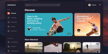 Have a quick look at this amazing dashboard featuring a skateboard video platform that you can use as an example in your next project. Find out more CSS dashboards.